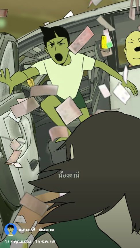 ก่อนหน้านี้ทางเพจ "แสวง" ได้อัปโหลดคลิปการ์ตูนใหม่ที่มีเนื้อหาสุดแปลกแหวกแนวที่เล่าเรื่องของชายคนหนึ่งที่ได้เผชิญหน้ากับนางตานีผีไทยที่สิงอยู่ในต้นกล้วย ซึ่งทั้งสองจะเผชิญหน้ากับเหตุการณ์สุดป่วน ซึ่งส่งให้เกิดกระแสเป็นไวรัลอย่างมากบนสื่อโซเชียล และยังส่งให้ "นางตานีตารางวาที่ 43" ที่เป็นไวฟุตนใหม่ที่ได้รับการถามถึงมากมาย มาในคราวนี้เพจแสวงได้ออกคลิปวิดีโอตัวใหม่แล้ว