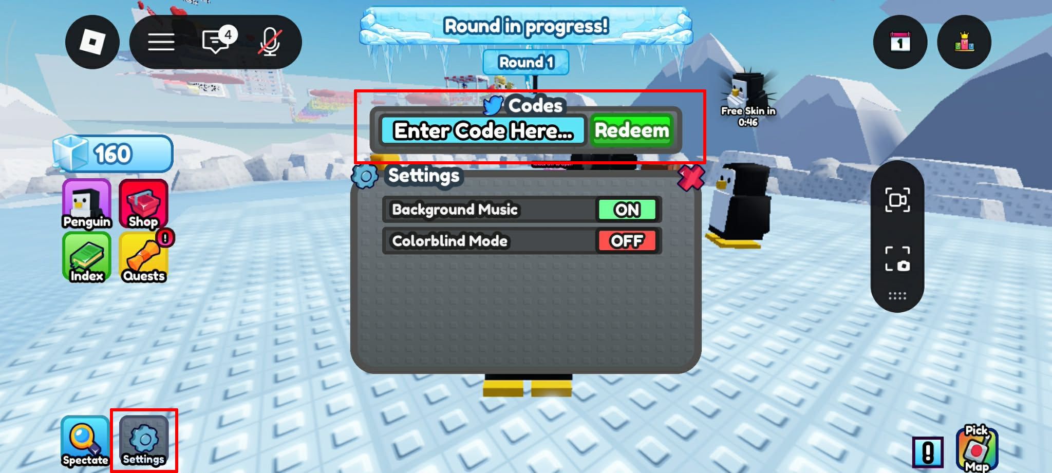 เข้าไปในเกม กดปุ่ม Setting (รูปฟันเฟืองซ้ายล่าง) จะปรากฏหน้าต่าง Enter Code Here.. สามารถกรอกโดค้ดและกด Redeem ได้เลย