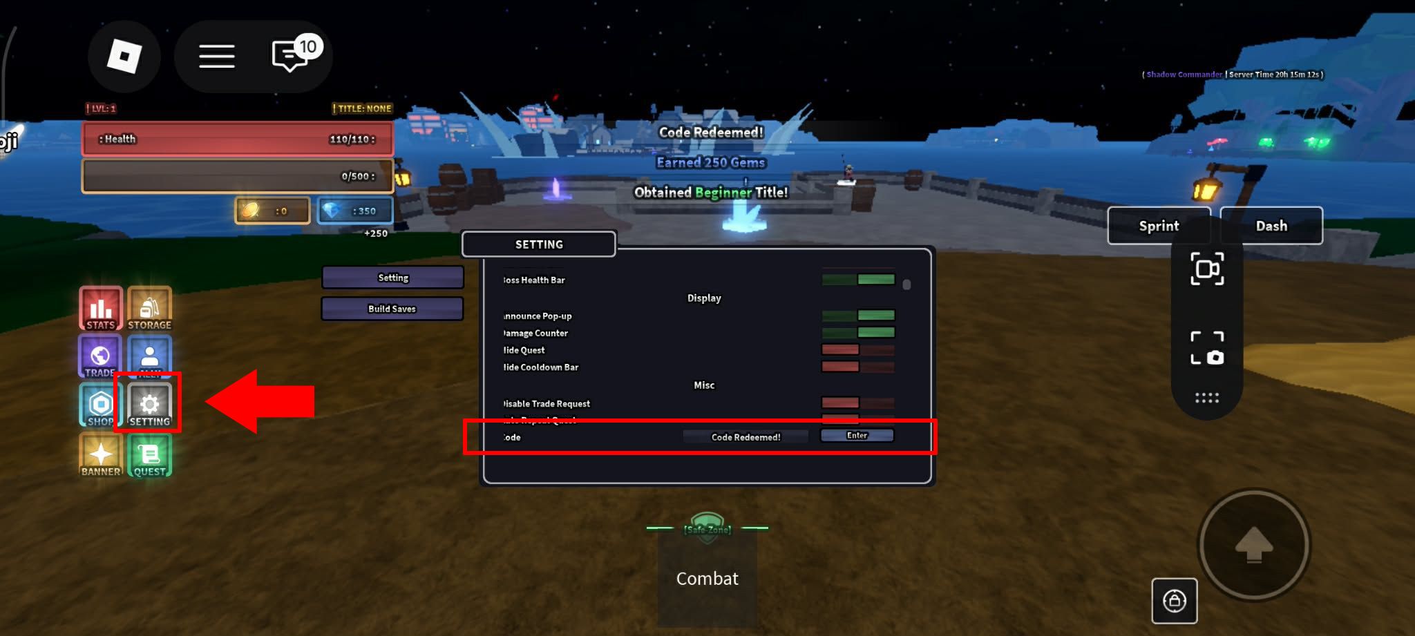 วิธีเติมโค้ด Rogue Piece