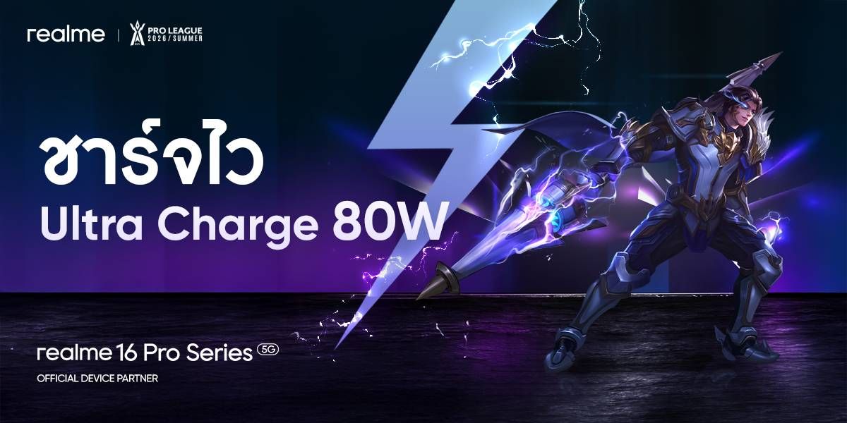 realme สมาร์ตโฟนตัวแรงของสายเทคและเกมเมอร์ พร้อมพาทุกคนเข้าสู่โหมดแข่งจริงในฐานะ “OFFICIAL Device PARTNER” ของศึกเดือด RoV Pro League 2026 Summer เวทีการแข่งขันอีสปอร์ตระดับประเทศที่รวมสุดยอดทีม RoV แถวหน้าของไทยไว้ในสนามเดียว ชวนแฟน ๆ RoV และสายอีสปอร์ตมาปลดล็อกขีดจำกัดความมันส์ สัมผัสประสบการณ์เกมมิ่งเต็มรูปแบบด้วยพลังความแรงระดับโปร เพลย์ลื่นไหล เฟรมเรตนิ่ง รองรับทุกจังหวะการต่อสู้แบบไม่มีสะดุด พร้อมกิจกรรมสุดเอ็กซ์คลูซีฟจาก realme ที่จัดเต็มเพื่อแฟนเกมโดยเฉพาะ ไม่ว่าจะเป็นโซนทดลองเครื่อง เกมชาเลนจ์ และของรางวัลมากมาย ท่ามกลางบรรยากาศเชียร์สุดเดือดที่พร้อมระเบิดทุกไฟต์ในรอบชิงชนะเลิศ ระหว่างวันที่ 4 – 5 เมษายน 2569 ณ BITEC Live ตั้งแต่เวลา 10.00 น. เป็นต้นไป แล้วมาร่วมลุ้นไปพร้อมกันว่า ทีมใดจะก้าวขึ้นครองบัลลังก์แชมป์ และใครจะเป็นผู้เล่นที่เฉิดฉายที่สุดของซีซั่นนี้ พร้อมสร้างตำนานบทใหม่ให้วงการอีสปอร์ตไทย